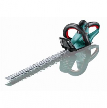 The lightweight design of the Bosch AHS 60-26 electric hedgecutter makes trimming mid-sized hedges less tiring. The convenient handling and the ergonomic rear handle with Softgrip ensure less exhausting working. The multi-position front handle provides a comfortable working in any position, while a see-through hand guard ensures additional convenience. The hedgecutter’s powerful performance is the result of its laser-cut, diamond-ground blade with sawing function, 26 mm tooth opening and 600 W motor for strong cutting.